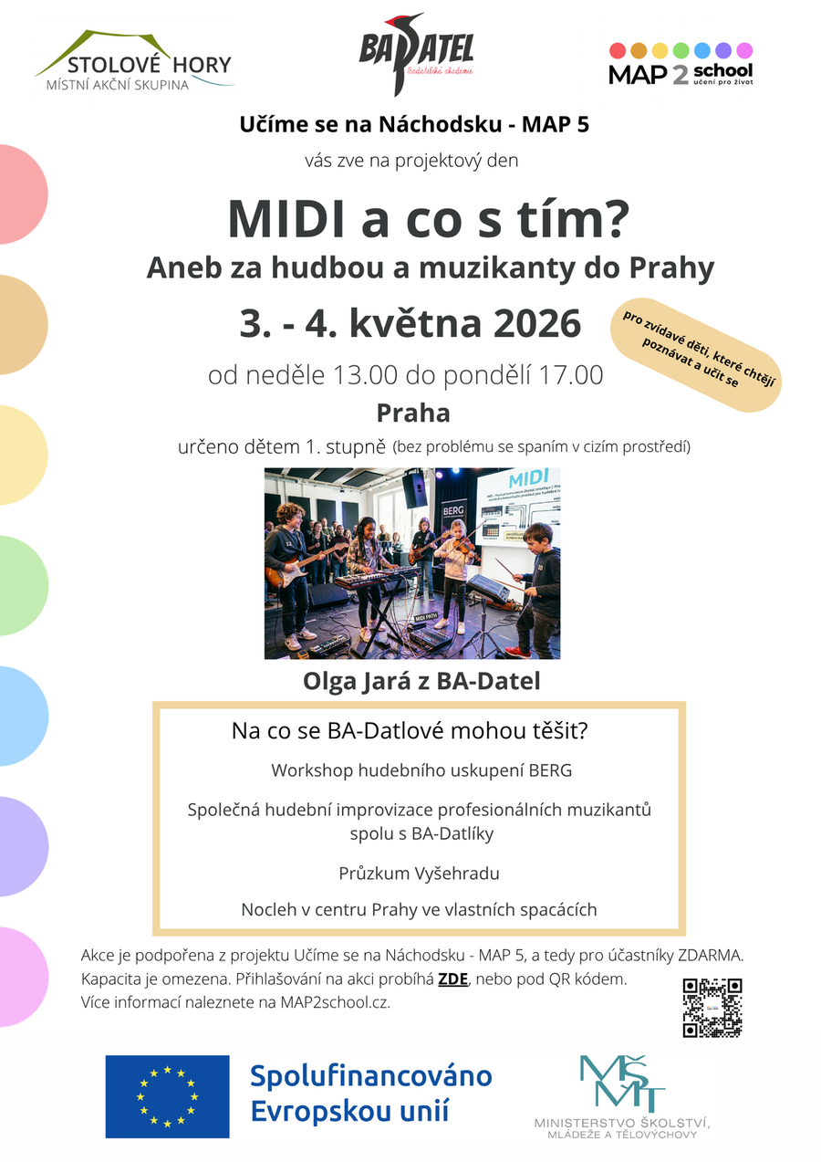 Dvoudenní výprava se uskuteční 3. - 4. května 2026 s názvem "MIDI a co s tím? Aneb za hudbou a muzikanty do Prahy".